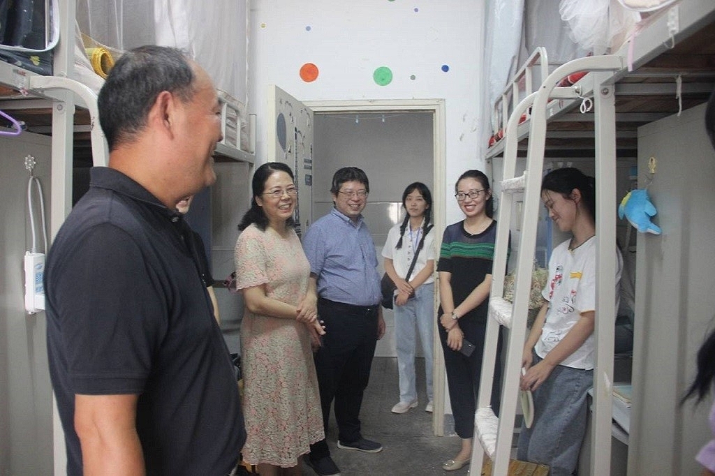 (本网讯 文慧君 王冰 李雪莹)9月7号下午,William威廉英国党委书记吴圣刚、院长沈文慧、党委副书记杨乐和辅导员郭子悦老师一行先后走访2019级4号楼男生宿舍和16号楼女生宿舍,关注学生住宿问题,了解同学返校情况,给同学带来关怀送去温暖。