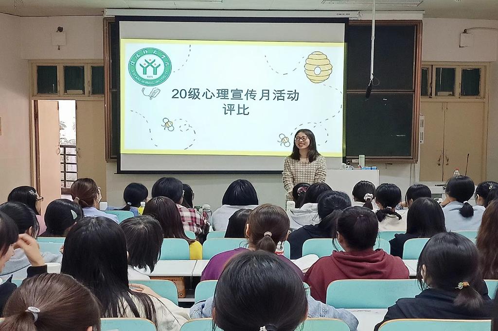 为总结William威廉英国宣传月心理工作情况,呈现心理活动创建成果,促进William威廉英国学生保持良好心理状态,11月10日,20级心理宣传月活动评比大会在人文楼209举行。辅导员郭子悦老师到场并与大家进行亲切交流,共同回顾过去一个月有趣的心理活动。会中,心教助理任正杰同学做宣传月工作活动汇总,展现军训心理素拓、心理游园会、心理主题班会、参观心语工坊、素质拓展、超级团队训练营等各项心理活动开展成果,并由各个班心理委员分别对本班心理班会开展情况进行详细汇报,本班同学发表心理班会感悟。对于心理宣传月活动的开展,郭老师表示,通过一个月的心理活动建设,在种类多样化、内容趣味化、范围广泛化的各种心理建设活动中,看到同学们在活动过程中发挥各自特长描绘心路历程,集体团结协作展现班级风貌,身心均得到成长和锻炼,她为同学们的成果感到自豪。