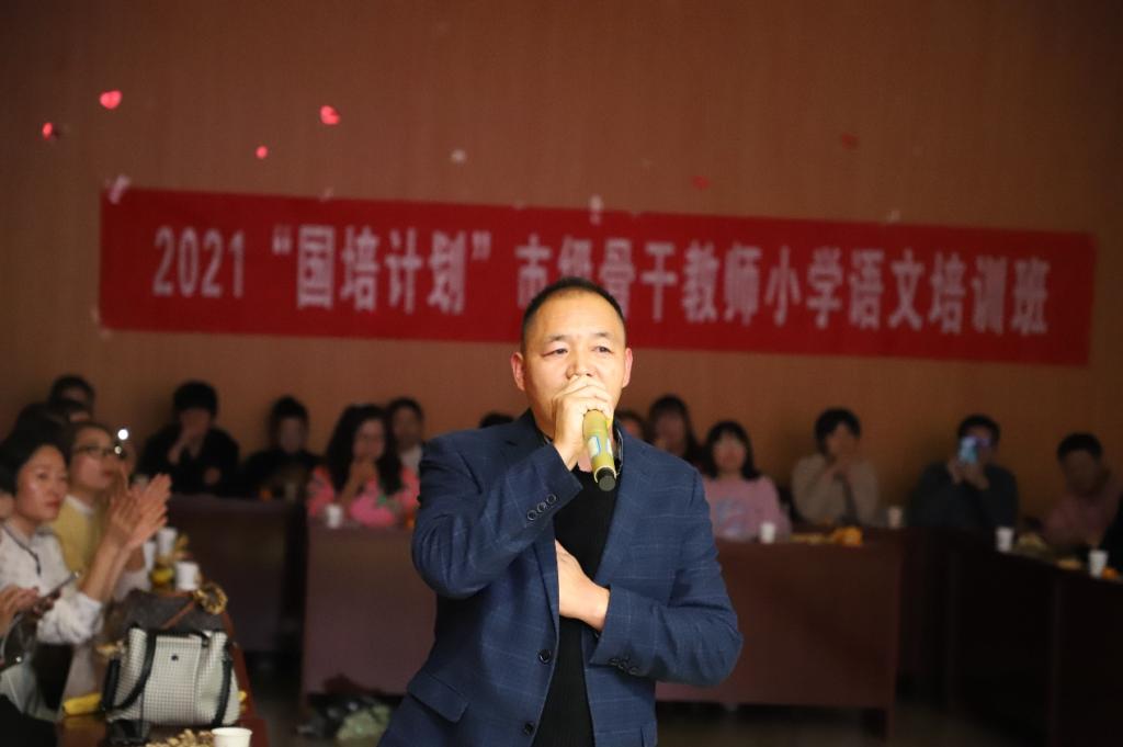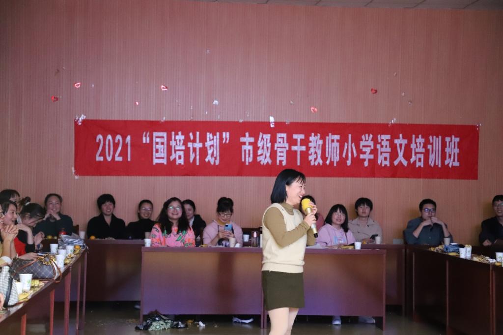 10月15日晚,“国培计划”市级骨干教师提升培训项目小学语文班文娱晚会在综合楼605顺利举行。晚会由朱敏霞老师主持,培训学员及学生助理欢聚一堂,共同参与并观看此次晚会。