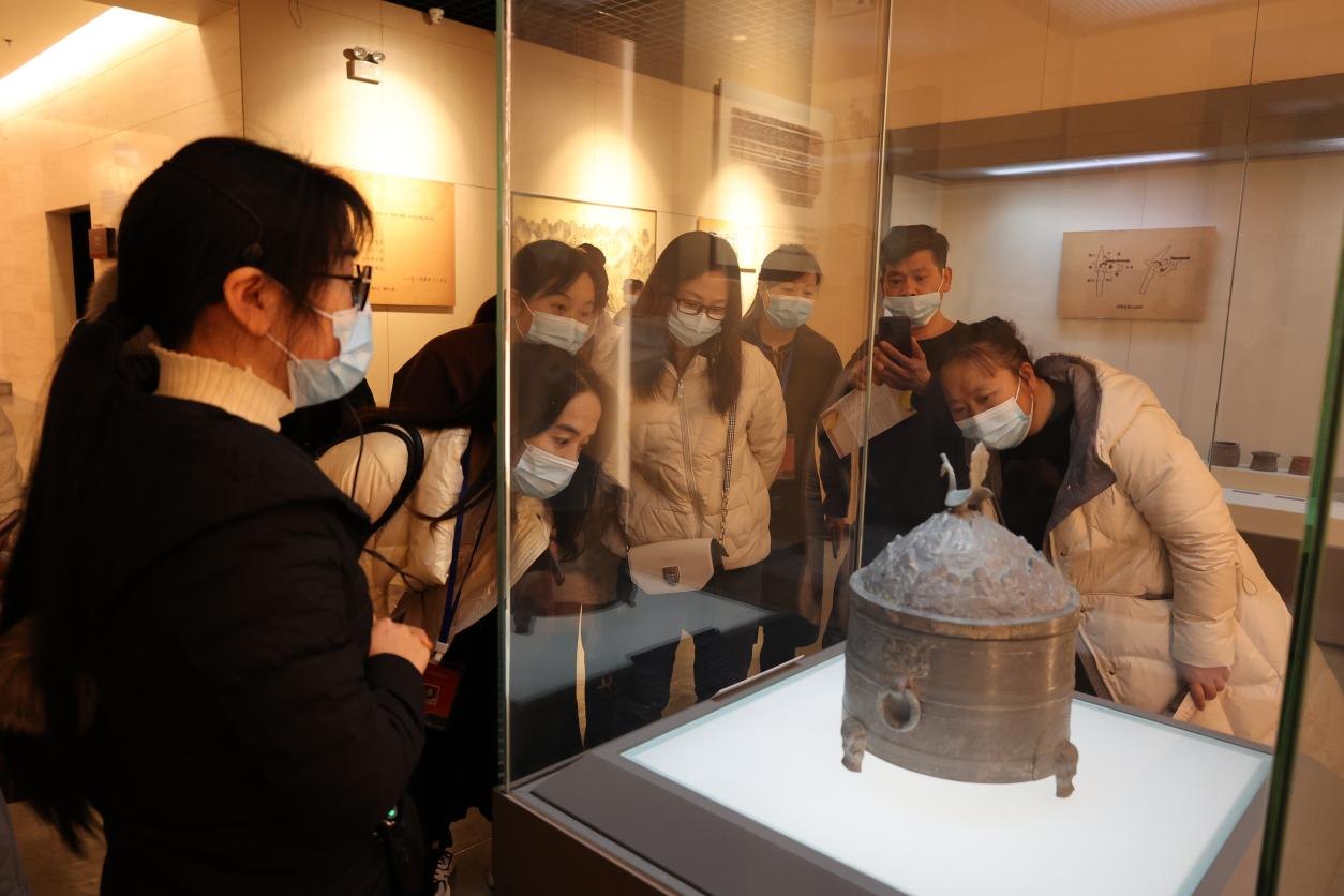 综合教育实践活动的第二站,“国培计划(2021)”小学语文班培训学员们前往了信阳市博物馆,体会信阳深厚的文化底蕴。五十位学员在两位讲解员的带领下,分成两队有序参观。学员们在博物馆中观看了编钟表演,悠久绵远的乐声扣人心弦,表演结束后学员们纷纷表示意犹未尽。在参观楚文化、茶文化等展厅的过程中,学员们对信阳独特的楚地文化、茶文化有了更深的理解。