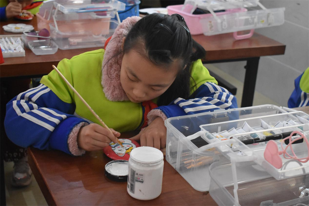 在周慧莹老师及两名少先队员的讲解下,一百五十余名培训学员先后参观了足球社团、乒乓球社团、石头绘社团、合唱社团、篮球社团、跳绳社团、名师工作室。