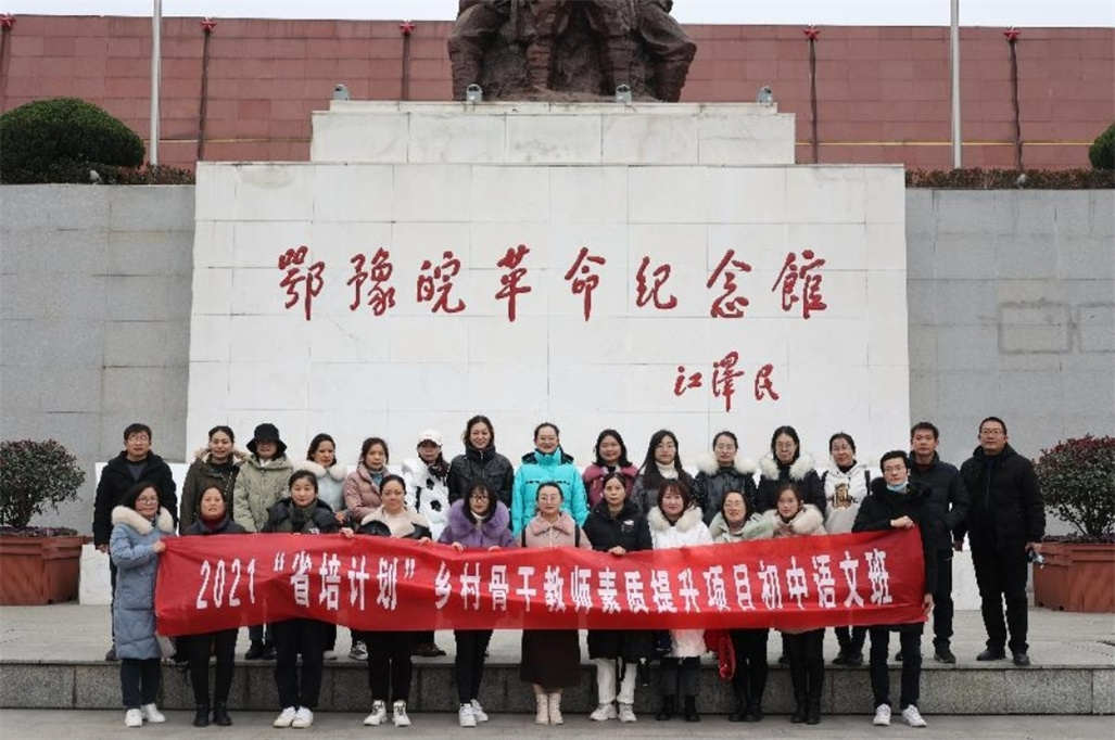 12月25日下午,“省培计划(2021)”乡村骨干教师初中语文培训班学员在班主任朱敏霞的带领下,前往信阳市鄂豫皖革命纪念馆参观,上了一堂“行走的”思政课。