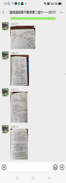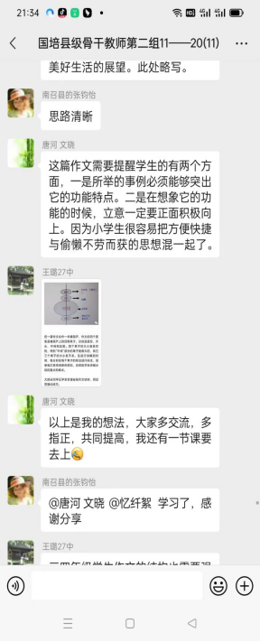 因为疫情防控的需要,本次“国培计划(2021)”县级骨干教师培训小学语文班的研课磨课在线上进行。尽管学习形式不一样,但是学员们的交流热情不减。每组的组长在小组群里发布讨论的课文,学员们积极参加讨论,从自己的教育教学经验出发,用文字和图片的形式表达自己的教育心得。