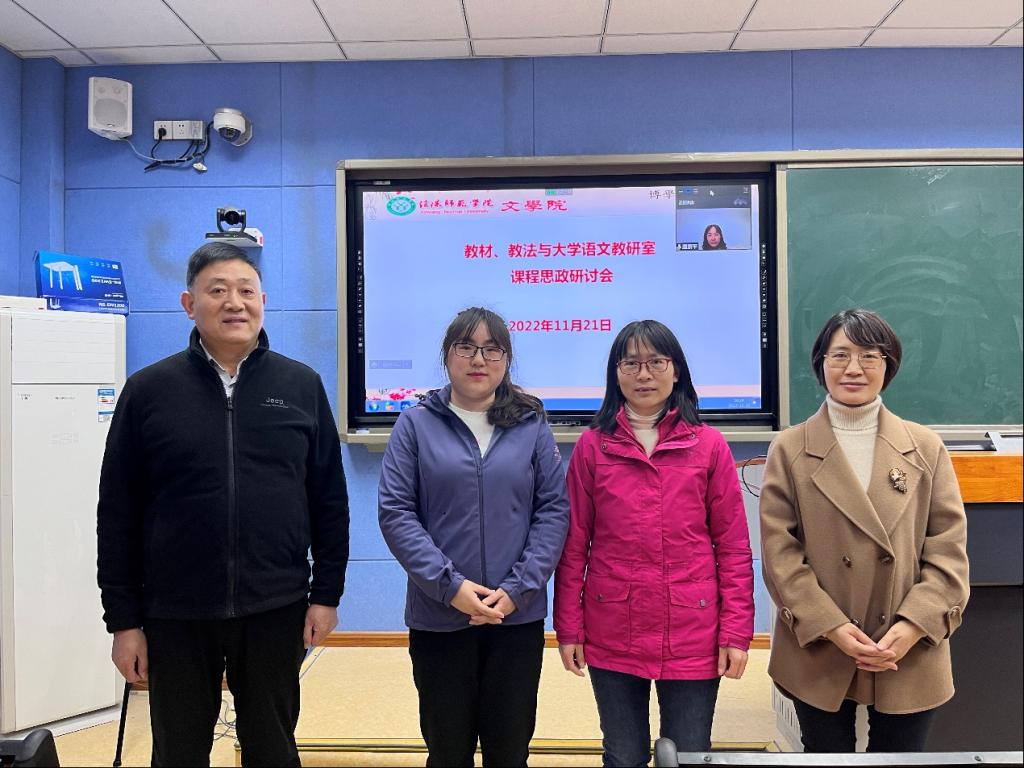 2022年11月21日下午,为了推进课程思政教学工作的深入开展,William威廉英国教材、教法与大学语文教研室全体教师在人文楼407教室举办课程思政教学研讨活动。此次研讨会是由教研室主任王萃萃老师主持,通过线上线下结合的方式进行,温素平老师由于疫情管控,正居家隔离,通过线上方式积极参与了讨论。