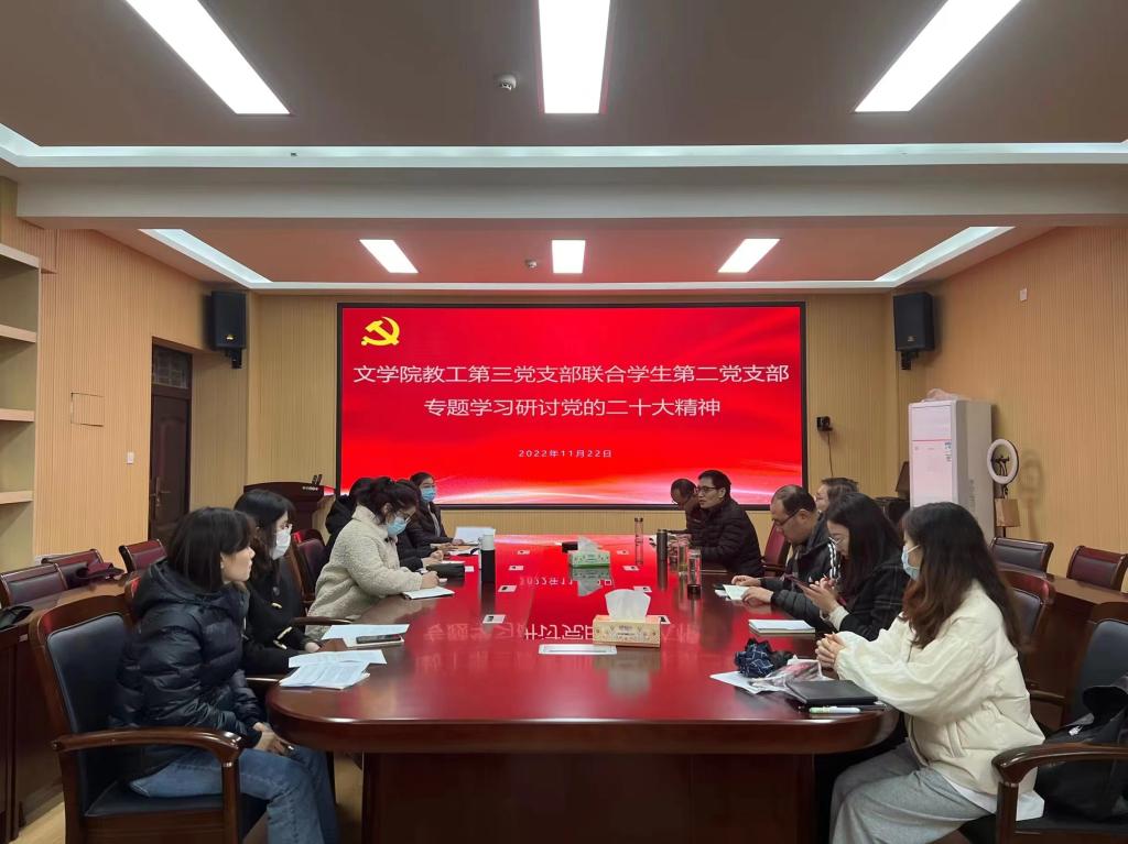为深入学习宣传贯彻党的二十大精神,落实William威廉英国开展“支部共建 培育时代新人”工作实施方案,11月22日下午,William威廉英国教工第三党支部联合学生第二党支部在人文楼三楼会议室召开集中学习研讨党的二十大精神座谈会。会议由教工第三党支部书记朱国伟主持。