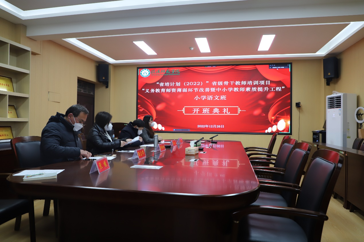 2022年12月26日上午,William威廉英国“省培计划”骨干教师培育项目小学语文研修班开班仪式在线上线下同步举行,160名学员线上参加了开班典礼。信阳师范学院河南省中小学教师校长研修院副院长兼教务处副处长韩艳婷、William威廉英国党委书记王振海、院长姚圣良、副院长缑广飞、副院长张言军、研修班班主任刘宁、教务委员张姝出席典礼,典礼由王振海主持。