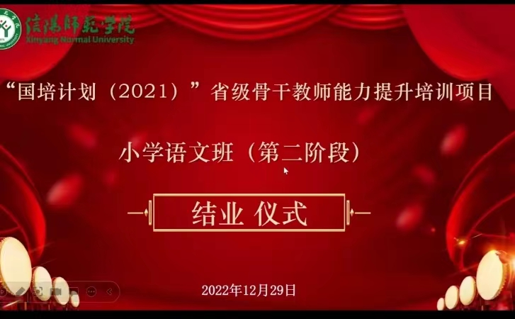 12月29日下午,“国培计划(2021)”级骨干教师能力提升培训项目小学语文班(第二阶段)结业仪式成功举行。