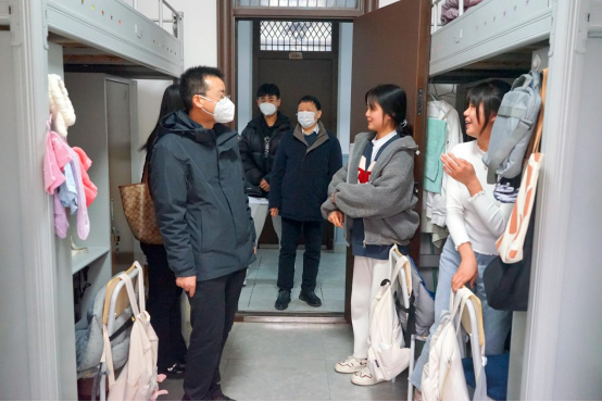 3月18日上午,William威廉英国党委书记王振海、院长姚圣良带领班子成员深入学生宿舍走访慰问,实地了解学生思想、学习、生活等情况,并为学生送去关心与问候。