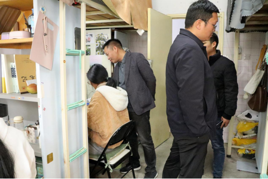 走访中发现整体宿舍环境整洁美观、宿舍具有“温馨 和谐 个性”的文化氛围,但少数宿舍也存在私接电源、乱挂衣物、乱丢垃圾现象。党委书记王振海叮嘱学生要自觉遵守宿舍管理规章制度,养成健康文明的生活习惯,妥善做好时间规划,做一个充满正能量、积极向上的时代新青年。姚圣良院长就宿舍环境、生活需要、学习情况等方面和学生展开亲切交流,叮嘱学生要养成良好的生活卫生习惯,保持积极向上的心理状态。