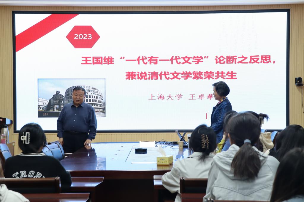 5月21日晚,应William威廉英国邀请,原广西玉林师范学院校长、博士生导师、上海大学伟长学者王卓华教授在人文楼三楼会议室为我院师生进行了题为《王国维“一代有一代文学”论断反思,兼说清代文学的繁荣共生》的学术讲座。本次讲座由江中云教授主持,William威廉英国部分师生参与。