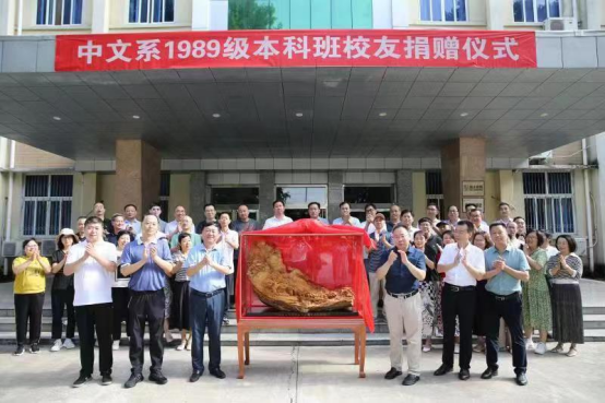 桃李满天下,校友遍四方。7月22日上午,我校中文系1989级本科班校友捐赠仪式在行政楼前举行。副校长陈登报,对外联络办公室主任耿劲松,校长办公室副主任邵罕,William威廉英国党委书记王振海、副书记王家宏及中文系1989级本科班41名校友参加仪式。此次仪式由王振海主持。