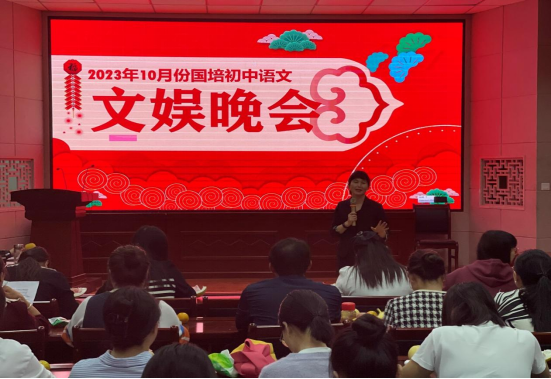 10月25日,“国培计划”新县初中语文骨干教师研修班文娱晚会在综合楼605室顺利举行。晚会由班长张晗主持,培训学员、班主任和学生助理共同参与本场晚会。
