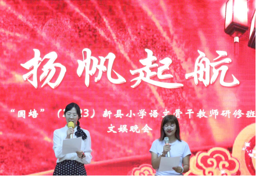 9月20日晚,“国培计划(2023)”项目县(新县)小学语文研修班文娱晚会在综合实验楼605顺利举行。晚会由文娱班长杨瑜和田桂芳共同主持, 培训学员、班主任张姝及学生助理欢聚一堂,共同参与并观看此次晚会。