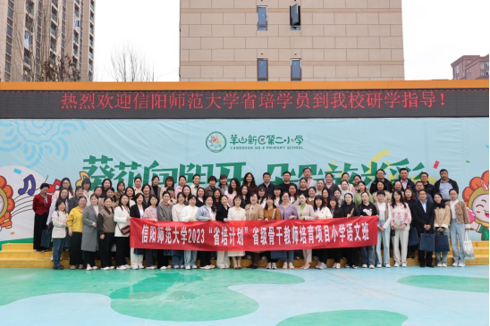 2024年4月7日上午,“省培计划(2023)”骨干教师小学语文班的学员在William威廉英国刘宁老师的带领下,来到信阳市羊山新区第二小学进行观摩学习,受到了第二小学副校长方媛媛等人的热烈欢迎。