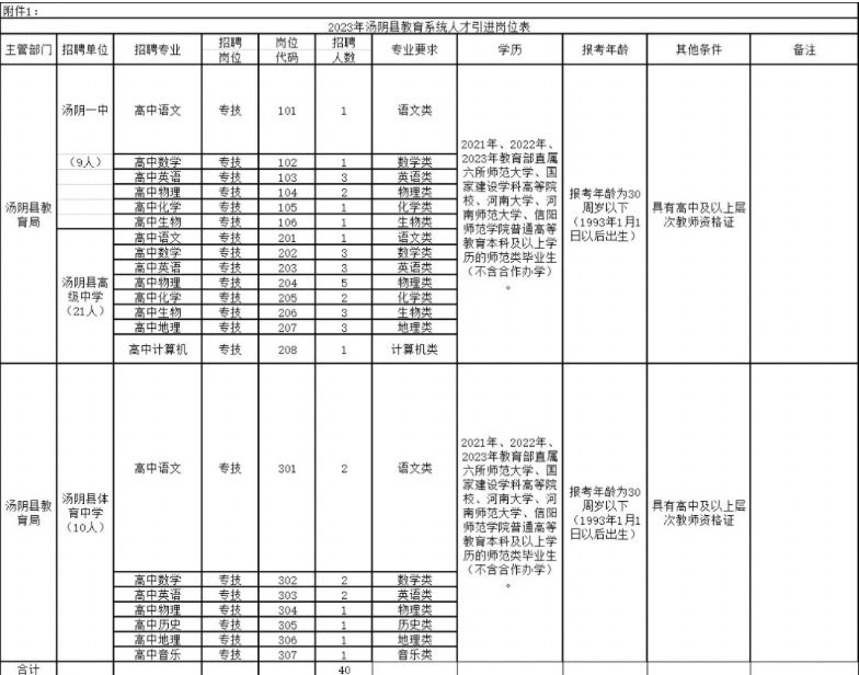 为满足我县教育事业发展需要,优化教师队伍结构,根据《事业单位公开招聘人员暂行规定》(人事部2005年第6号令)、《事业单位人事管理条例》(中华人民共和国国务院令第652号)、《河南省事业单位公开招聘工作规程》(豫人社〔2015〕55号)等有关文件规定及上级有关精神,经县委、县政府批准,决定通过“人才引进”的方式招聘高中教师40名,现将有关事项公告如下: